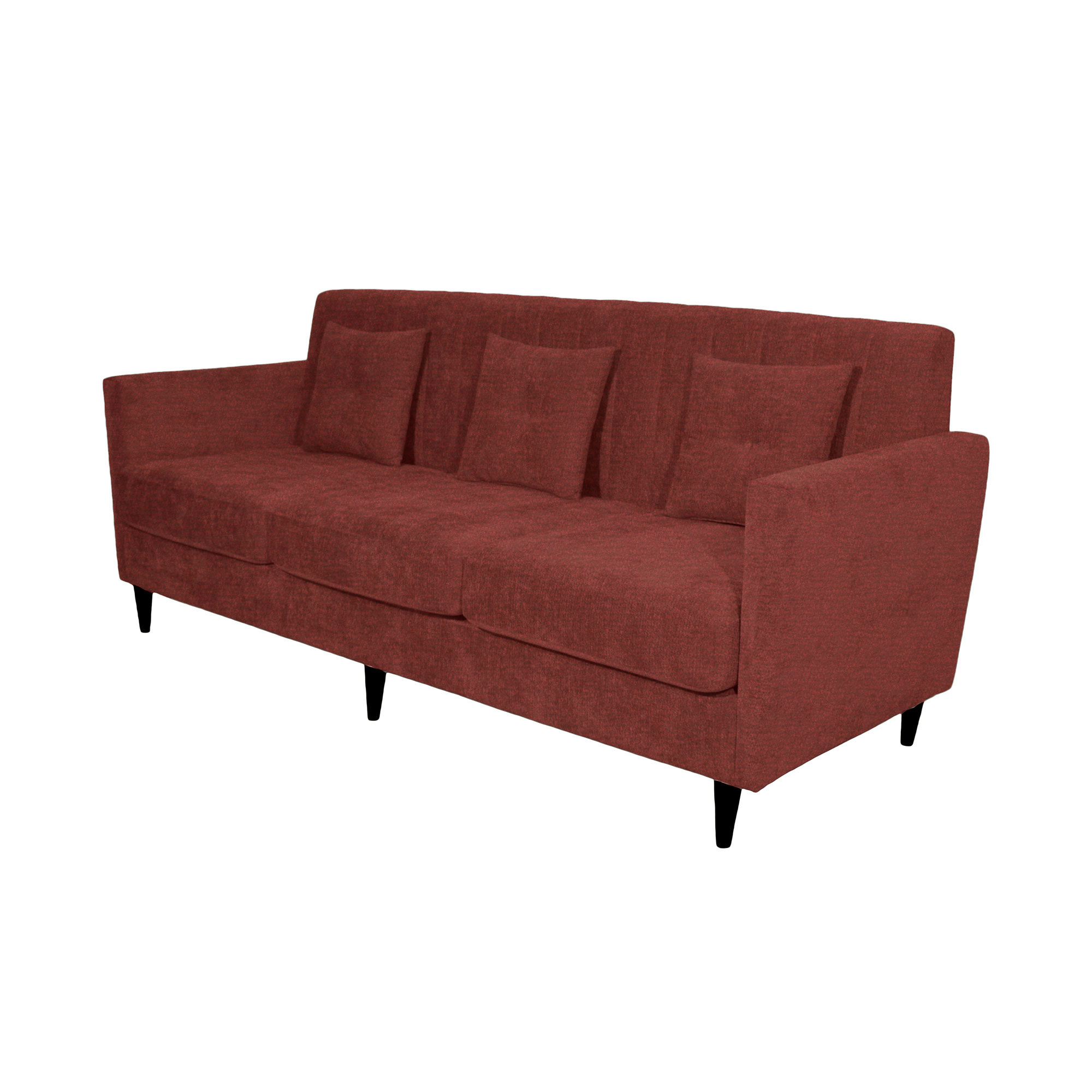 Tapiteria din stofa catifelata adauga un plus de rafinament si o senzatie placuta la atingere. Sezutul este construit cu doua straturi de poliuretan, separate de un strat de pasla si imbracate in vata minet de densitate mare (300 g/mp, 3 cm grosime), ceea ce se traduce printr-un confort real. Canapeaua include 3 perne decorative de 38 x 38 cm, umplute cu fulgi de poliuretan, utile atat estetic, cat si functional.