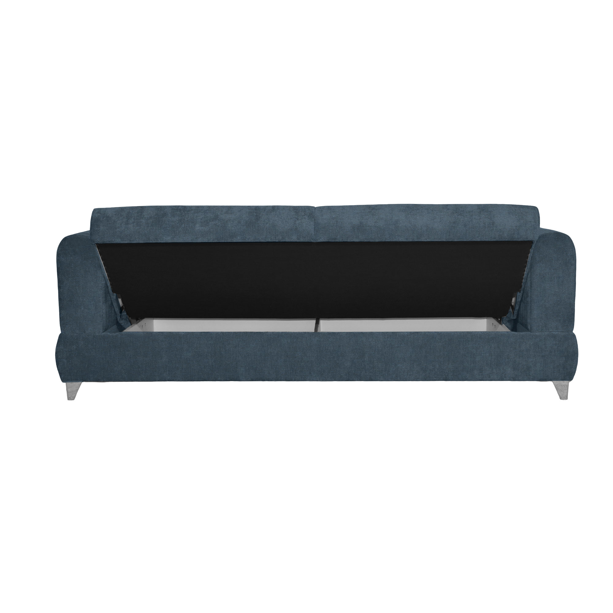 Mecanismul de extensie este simplu si rapid, transformand canapeaua intr-un spatiu de dormit de 190 x 120 cm, suficient pentru doua persoane. Sub sezut este integrata o lada de depozitare generoasa din PAL melaminat, utila pentru lenjerie, paturi sau perne.