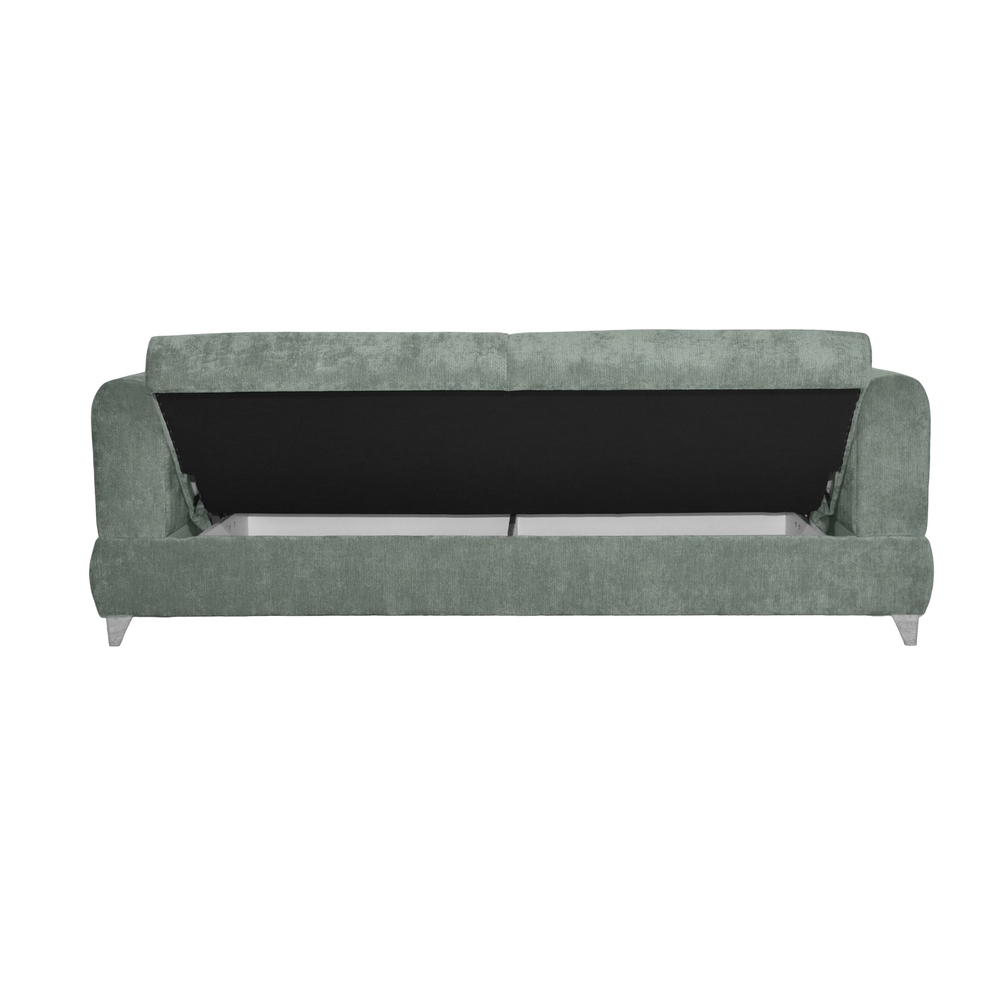 Mecanismul de extensie este simplu si rapid, transformand canapeaua intr-un spatiu de dormit de 190 x 120 cm, suficient pentru doua persoane. Sub sezut este integrata o lada de depozitare generoasa din PAL melaminat, utila pentru lenjerie, paturi sau perne.