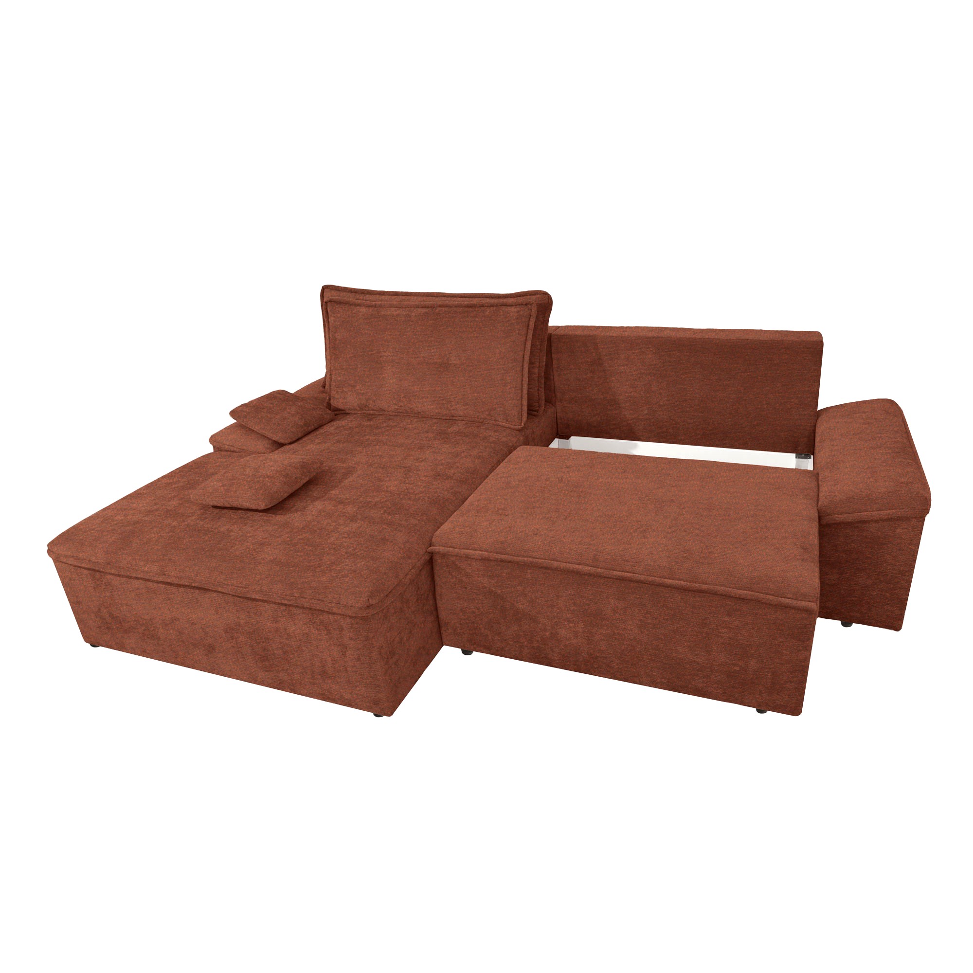 Coltar living extensibil pe dreapta, Otti, cu spatiu depozitare, caramiziu, 273 x 175 x 78 cm, 2C