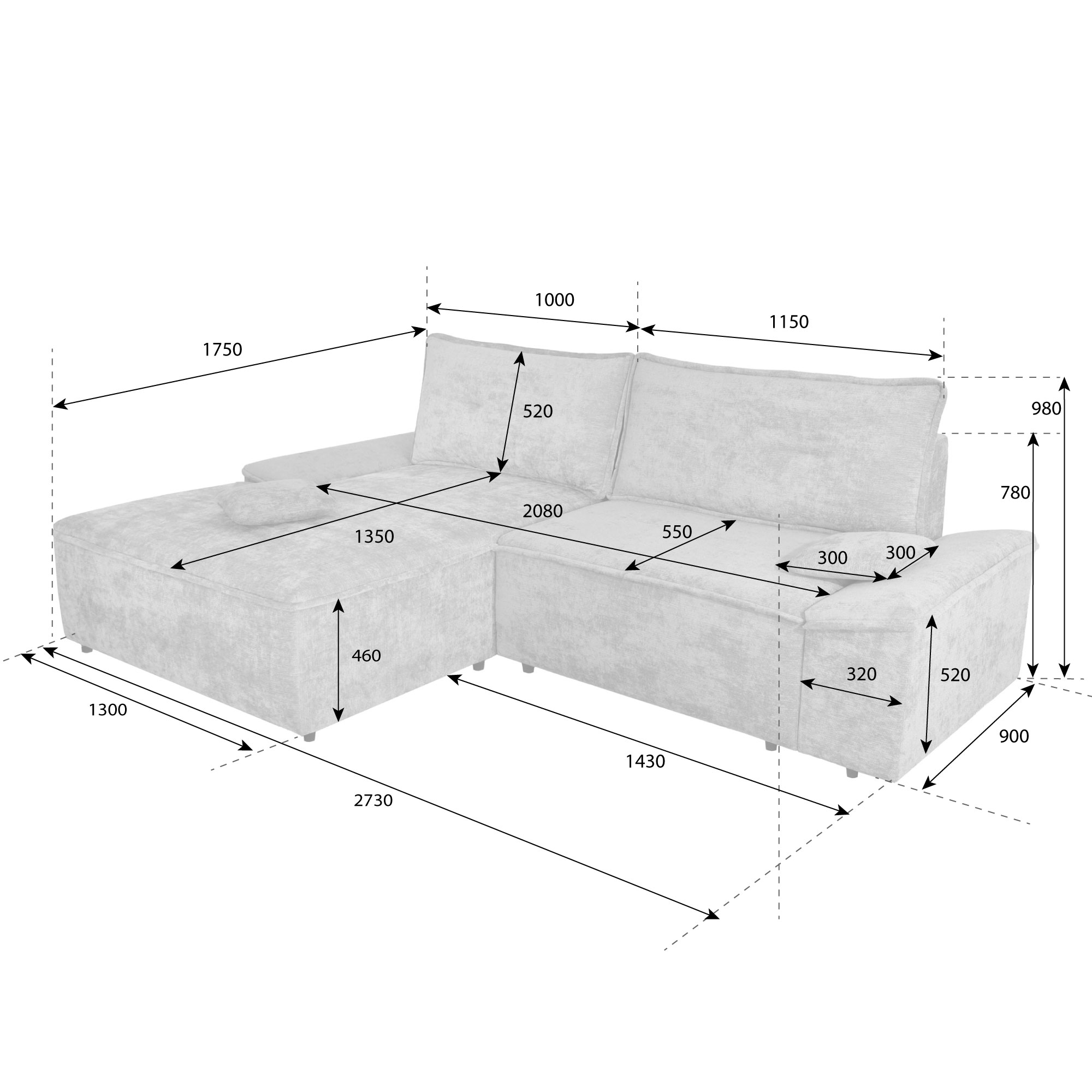 - dimensiuni: 273 x 175 x 78 cm (L x l x h);